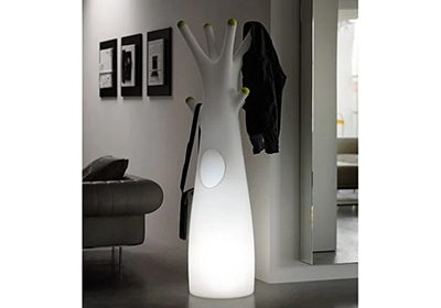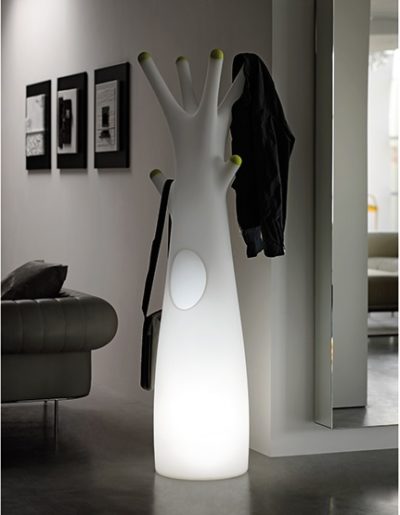 La sua forma, unita alla possibilità di inserire il kit di illuminazione, ricrea un’atmosfera magica e fiabesca. L’appendiabiti Godot con forma ad albero è realizzato in polietilene, un materiale plastico altamente resistente agli urti, ai graffi, ai raggi UV e agli agenti chimici; non assorbe i liquidi ed è facilmente lavabile. Inoltre, a fine vita, può essere riciclato.