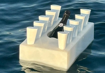 Realizzato in polietilene resistente, Ice Glam è progettato per durare nel tempo. Resiste agli urti, ai graffi e ai raggi UV, garantendo prestazioni eccellenti anche nelle condizioni più impegnative. Facile da pulire e igienico, è disponibile nel classico colore bianco, ma può essere personalizzato con il logo del tuo locale, un hashtag per eventi o incisioni laser sui calici. Un dettaglio che lo rende perfetto come idea regalo per gli amanti delle barche, delle piscine e dei cocktail.
