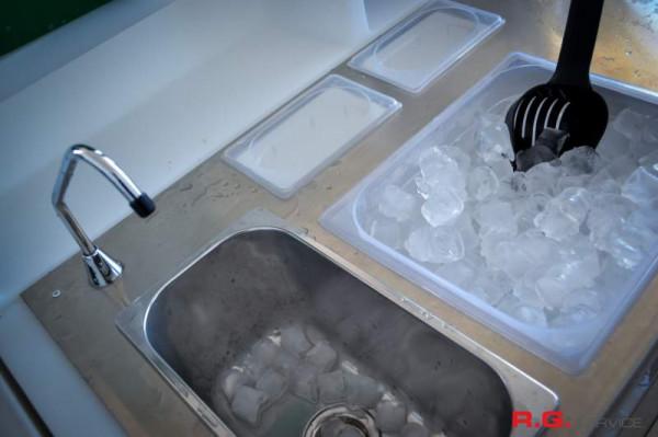 – Cocktail station professionali con lavamani, vaschette porta ghiaccio, porta condimenti e speed rack porta bottiglie per un servizio impeccabile.