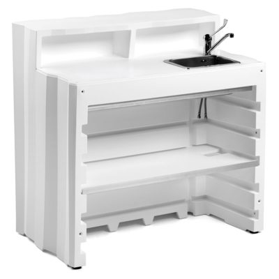 Realizzato in polietilene di alta qualità, il Frozen è resistente agli urti, agli agenti atmosferici e ai raggi UV, garantendo una lunga durata nel tempo. La sua struttura modulare consente di utilizzarlo come elemento singolo o di combinarlo con altri moduli per creare configurazioni personalizzate, come desk di accoglienza, postazioni bar o consolle per eventi.